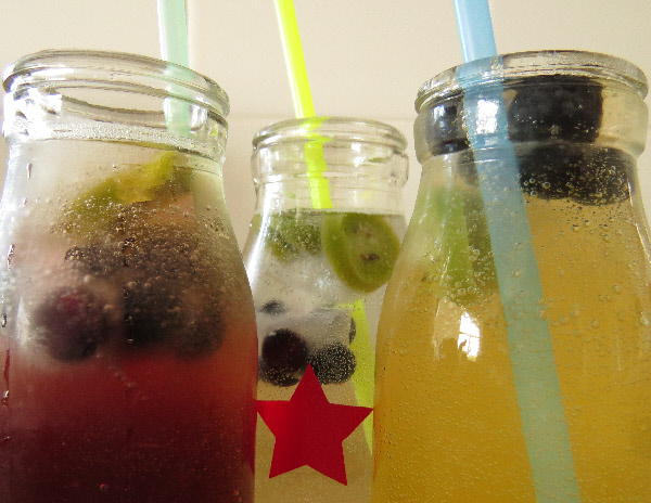 • Fruit Juice Fizz Cubes: Mix soda with a little leftover juice (for example apple, cranberry, or pineapple) and freeze with chopped fruit or edible flowers.